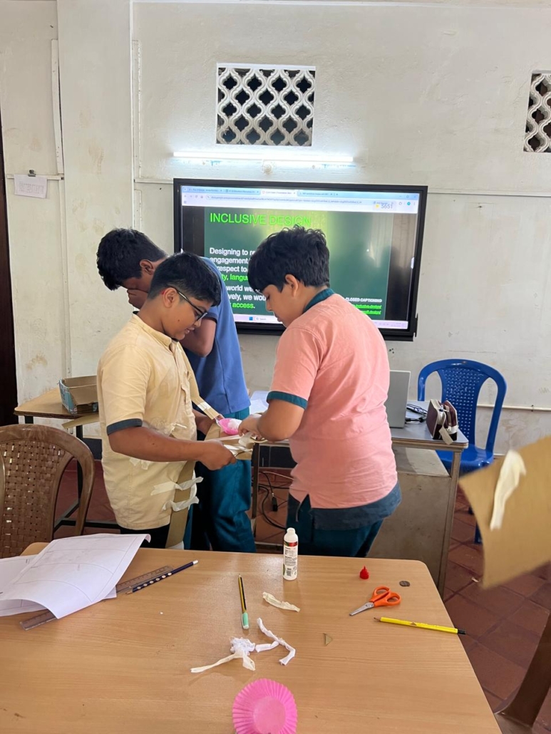 Importantly, students discovered that their adaptive devices reflected the principles of inclusive design — creating solutions that make everyday tasks more accessible for people with permanent, temporary, or situational challenges. This concept was further contextualized through reference to an MIT Museum event focused on accessibility in design, adding deeper real-world relevance.